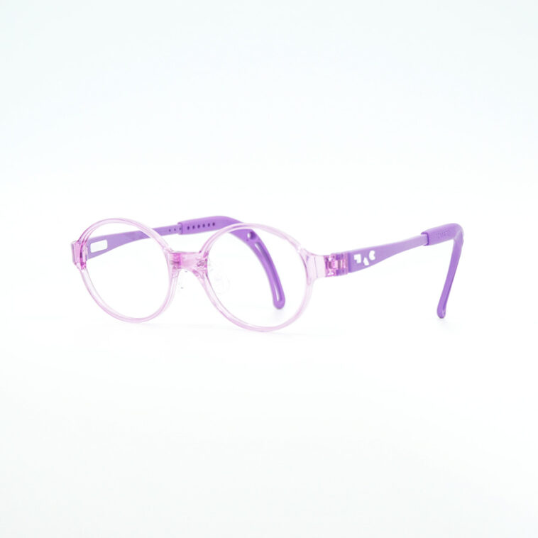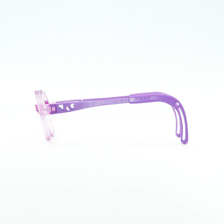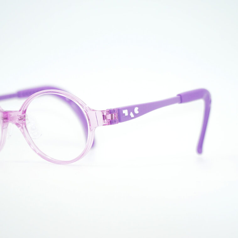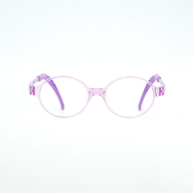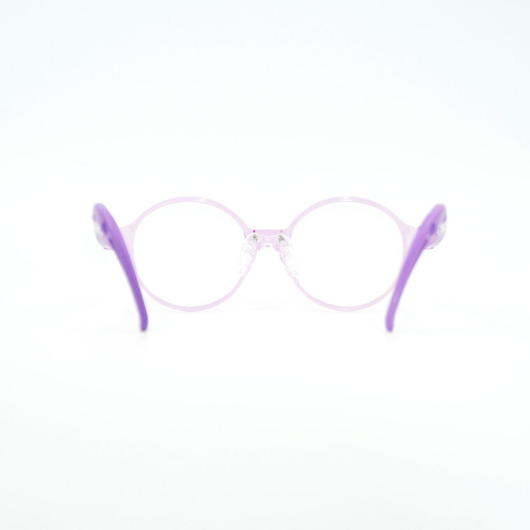 透明感のあるクリアパープルが目を引く、可愛らしさ満点の幼児向け眼鏡です。かわいいものが大好きな女の子に人気のカラーリングで、思わず「かけたい!」と思わせてくれる一本。やさしい色味と、ころんとしたラウンドタイプのシルエットは、小さなお子さまの可愛らしさをより引き立ててくれます。